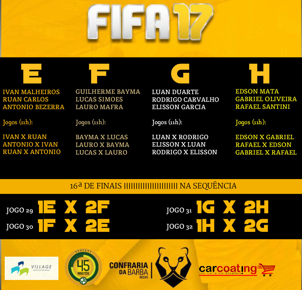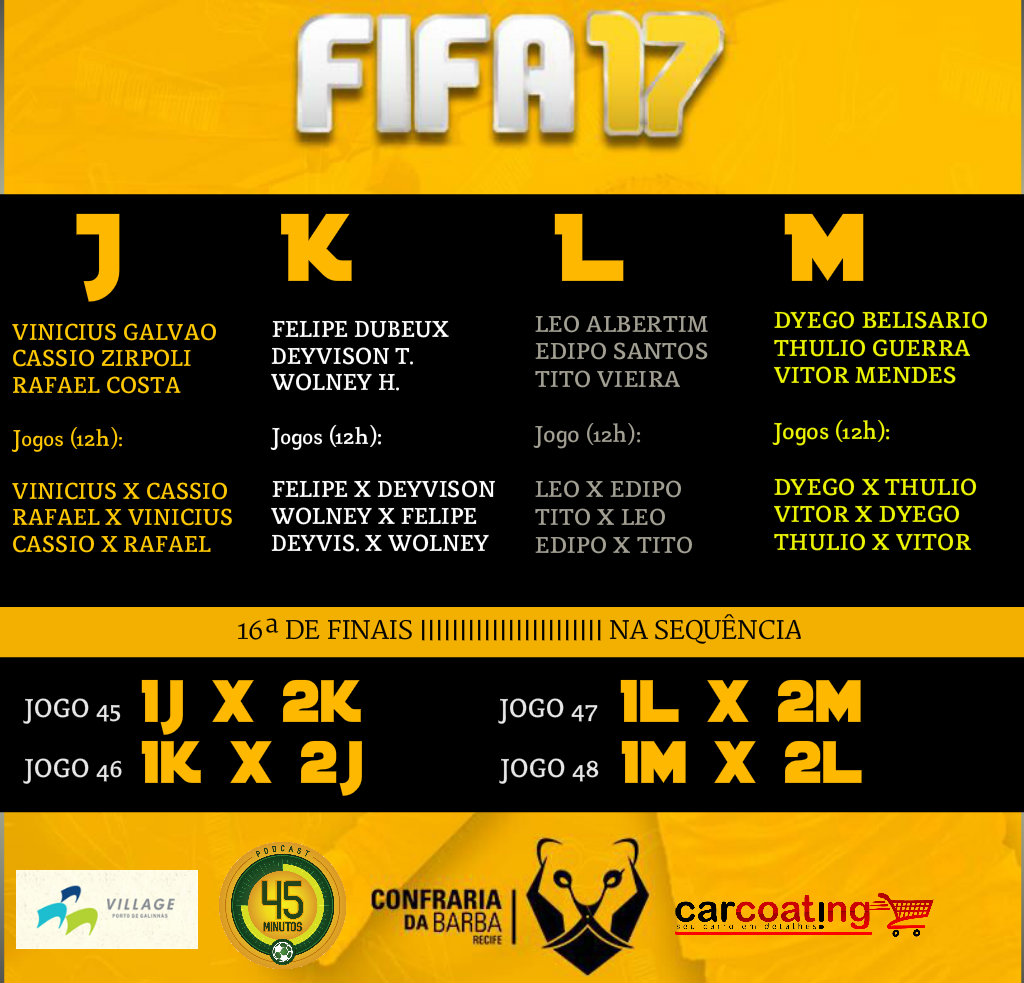 - Times: Cada jogador poderá escolher o clube que quiser em todos os jogos. Caso os dois escolham o mesmo time, serão utilizados padrões 1 e 2.