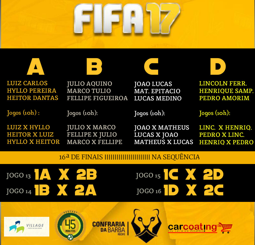- Campeão: Um fim de semana no Village Porto de Galinhas (duas diárias) + Detalhamento preventivo & detalhamento de interiores pra o seu carro na Car Coating + Corte de cabelo e barba na Confraria da Barba + 1 bebida.